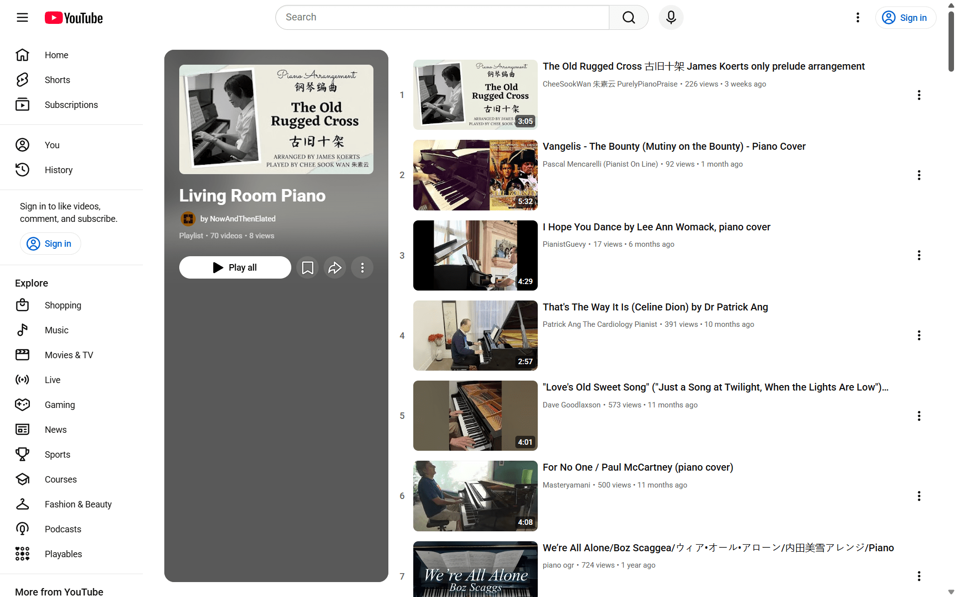 I have a YouTube playlist called Living Room Piano. It has about 70 channels so far -- one video from each -- of people playing piano at home. Most are amateurs, though some are or were gigging musicians. I started collecting these about 8 years ago but only recently created this playlist.